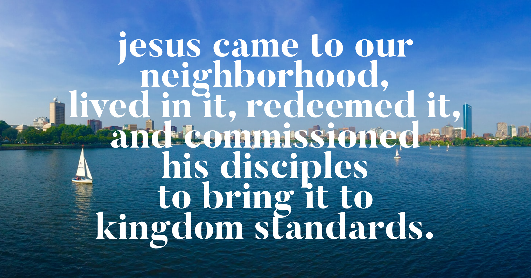 Jesus came to our neighborhood, lived in it, redeemed it, and commissioned His disciples to bring it to Kingdom standards.