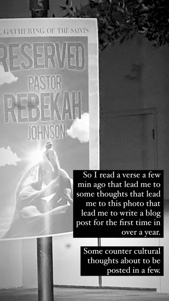 I was with a group of girlfriends at a women’s conference. We were guests, but as a pastor I was honored with having my own parking spot along with a special sign in front of the spot that said, “Reserved for Pastor Rebekah Johnson.”